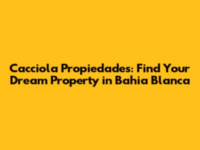 Are you looking for Cacciola Propiedades in Bahia Blanca? Well, you've come to the right place! This article dives deep into everything you need to know about finding your dream property with Cacciola Propiedades in the beautiful city of Bahia Blanca. Whether you're a first-time homebuyer, an experienced investor, or simply looking for a change of scenery, understanding the local real estate market and the role of key players like Cacciola Propiedades is crucial. So, let's get started and explore how you can navigate the Bahia Blanca property landscape with confidence and find the perfect place to call home.