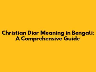 Christian Dior Meaning In Bengali: A Comprehensive Guide