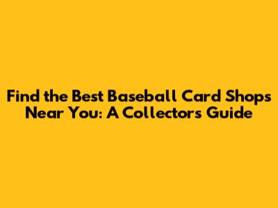 Finding the best baseball card shops near you is an exciting journey that can enhance your collecting experience. By using the tips outlined in this guide, you can discover hidden treasures, build relationships with other collectors, and enjoy the thrill of the hobby. So get out there, explore your local shops, and start building your dream collection. Happy collecting, everyone!