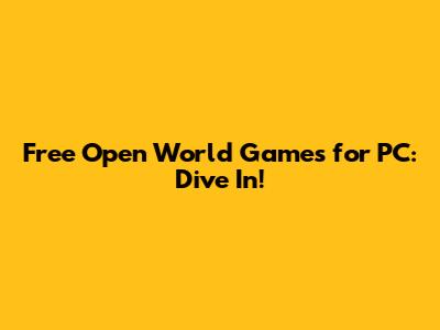 Free Open World Games For PC: Dive In!