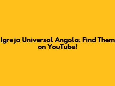 Igreja Universal Angola: Find Them On YouTube!