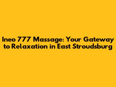 Ineo 777 Massage: Your Guide To Relaxation In East Stroudsburg