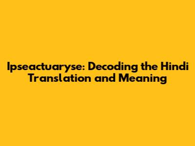 Ipseactuaryse: Hindi Translation And Meaning Explained