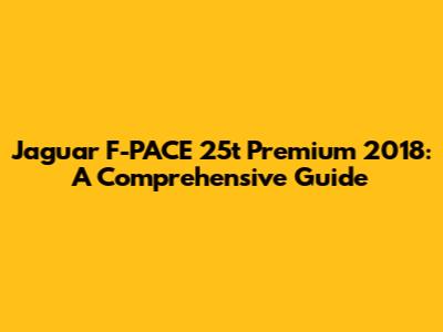 Jaguar F-PACE 25t Premium 2018: A Comprehensive Guide