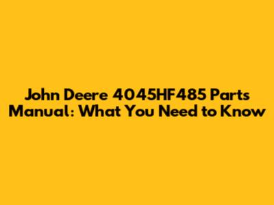 John Deere 4045HF485 Parts Manual: What You Need To Know