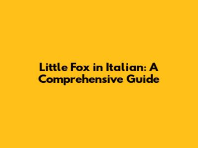 Little Fox In Italian: A Comprehensive Guide