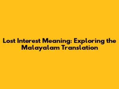 Lost Interest Meaning: Exploring The Malayalam Translation
