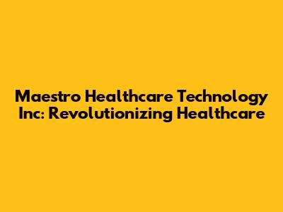 Maestro Healthcare Technology Inc: Revolutionizing Healthcare
