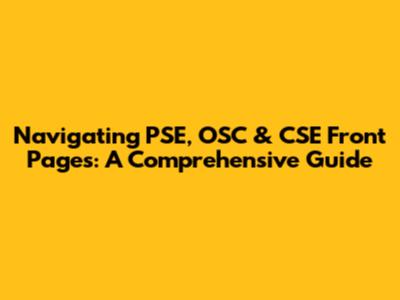 Navigating PSE, OSC & CSE Front Pages: A Comprehensive Guide