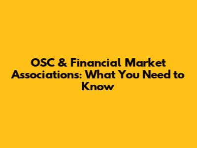 OSC & Financial Market Associations: What You Need To Know