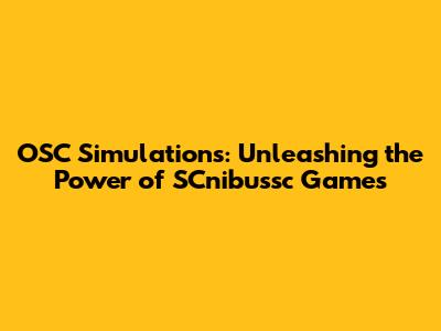 OSC Simulations: Unleashing The Power Of SCnibussc Games