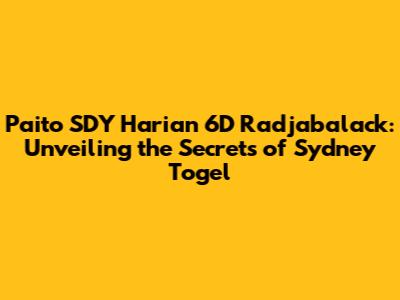 Hey guys! Ever felt like cracking the code to Sydney's Togel scene? Well, you're in the right spot. Today, we're diving deep into the world of Paito SDY Harian 6D Radjabalack. For those scratching their heads, "Paito" is basically a detailed chart or table that organizes historical Togel results. Think of it as your treasure map in the quest for predicting those elusive numbers. Now, let's get into why this specific Paito, offered by Radjabalack, is turning heads and how you can use it to potentially up your game.