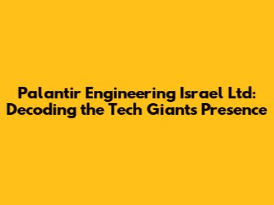 Alright, tech enthusiasts and curious minds, let's dive deep into the world of Palantir Technologies and its engineering hub in Israel. You've probably heard the name Palantir floating around, especially if you're into big data, AI, and cutting-edge software. But what exactly is Palantir Engineering Israel Ltd. all about? This article aims to unpack that, giving you a comprehensive look at its role, impact, and significance in the broader tech landscape.