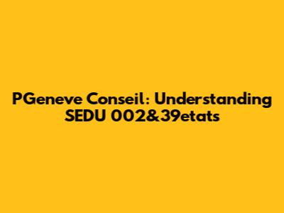Hey guys! Ever stumbled upon "PGeneve Conseil SEDU 002&39etats" and felt like you've entered a whole new dimension of jargon? You're not alone! This term might seem complex at first glance, but we're here to break it down in a way that's super easy to understand. In this article, we'll dive deep into what PGeneve Conseil is, what SEDU stands for in this context, and what the "002&39etats" part signifies. We'll explore each component, piece by piece, so you can confidently navigate discussions or documents that include this term. So, buckle up and let's get started on demystifying PGeneve Conseil SEDU 002&39etats!