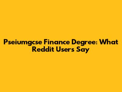 Pseiumgcse Finance Degree: What Reddit Users Say