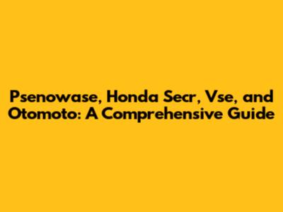 Psenowase, Honda Secr, Vse, And Otomoto: A Comprehensive Guide