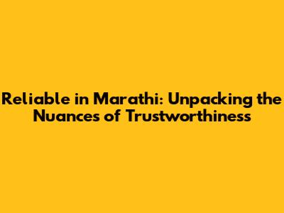 Reliable In Marathi: Understanding Its True Meaning