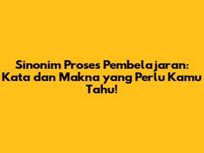 Sinonim Proses Pembelajaran: Kata Dan Makna Yang Perlu Kamu Tahu!