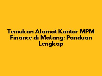 Temukan Alamat Kantor MPM Finance Di Malang: Panduan Lengkap
