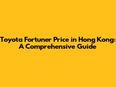 Toyota Fortuner Price In Hong Kong: A Comprehensive Guide