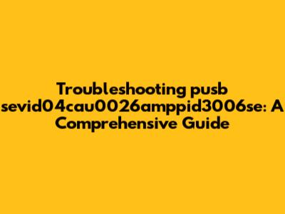 Troubleshooting Pusb Sevid04cau0026amppid3006se: A Comprehensive Guide