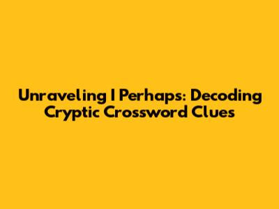 Tips and Tricks for Cracking "I Perhaps" Clues