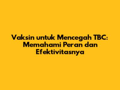 Jadi, guys, vaksin TBC adalah salah satu cara penting untuk melindungi diri kita dan orang-orang tersayang dari penyakit mematikan ini. Vaksin BCG, meskipun tidak sempurna dalam mencegah semua jenis TBC, tetap menjadi alat yang sangat berharga dalam upaya pencegahan TBC, terutama pada anak-anak. Jangan ragu untuk berkonsultasi dengan dokter tentang vaksin TBC dan dapatkan informasi lebih lanjut tentang manfaat dan risikonya. Ingat, kesehatan adalah investasi terbaik kita. Dengan vaksinasi dan langkah-langkah pencegahan lainnya, kita bisa menciptakan masa depan yang lebih sehat dan bebas TBC! Yuk, mulai peduli dengan kesehatan kita sejak dini!