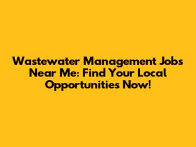 Wastewater Management Jobs: Find Local Opportunities Now!