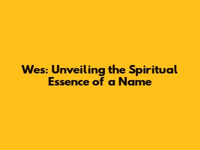 Wes: Unveiling The Spiritual Essence Of A Name